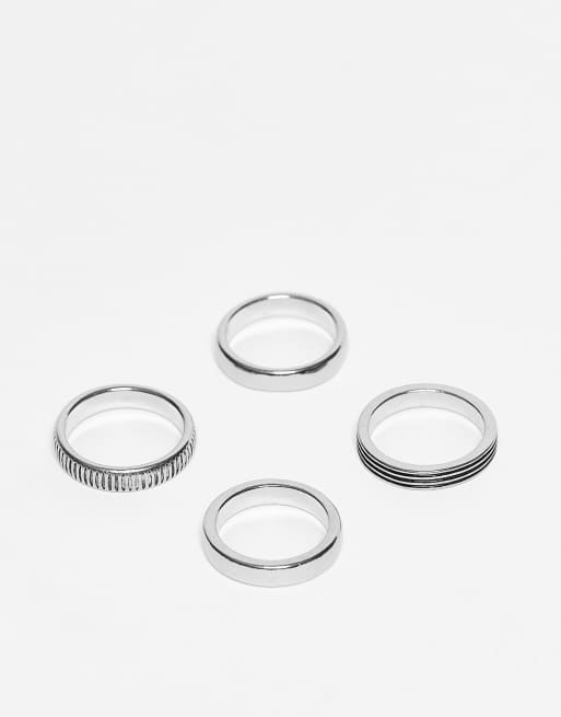 ASOS DESIGN - Lot de 4 bagues simples - Argent poli