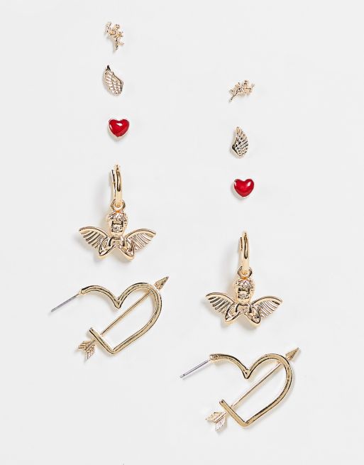 ASOS DESIGN - Lot de 5 paires de boucles d'oreilles à motifs variés - Doré