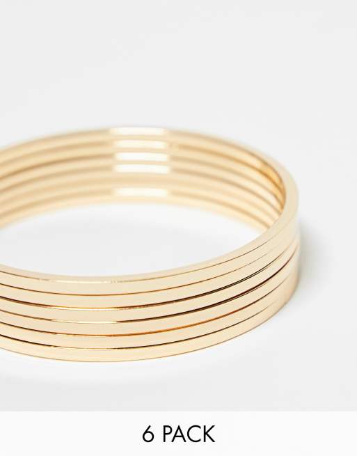 ASOS DESIGN - Lot de 6 joncs fins - Doré