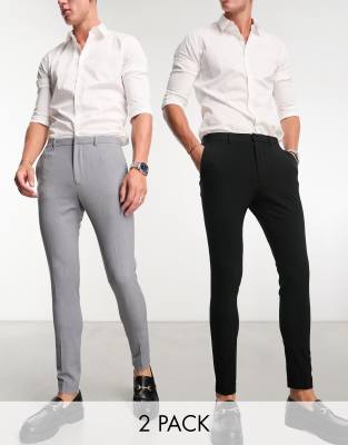 ASOS DESIGN - Lot de pantalons habillés super ajustés - Noir et gris