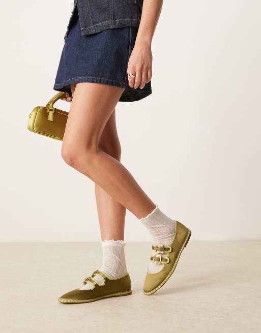 ASOS DESIGN - Lumina - Ballerines style babies en satin avec deux brides - Vert