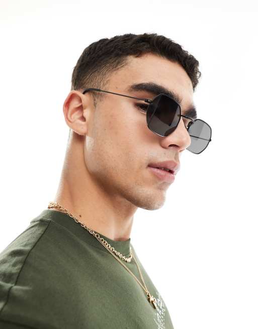 ASOS DESIGN - Lunettes de soleil angulaires à verres fumés - Métal noir