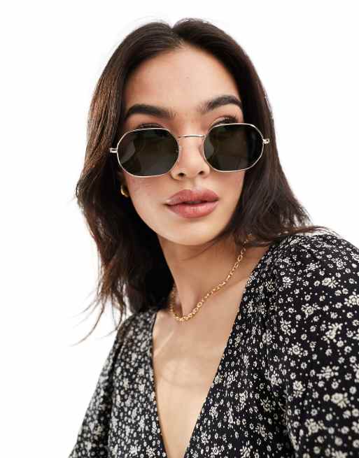 ASOS DESIGN - Lunettes de soleil angulaires en métal avec verres polarisés g15 - Doré