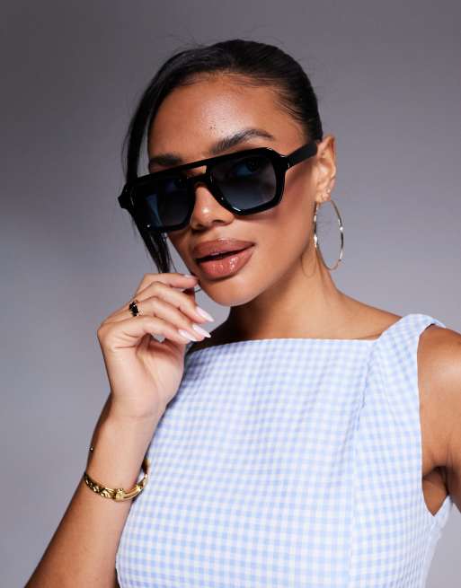 ASOS DESIGN - Lunettes de soleil aviateur angulaires - Noir