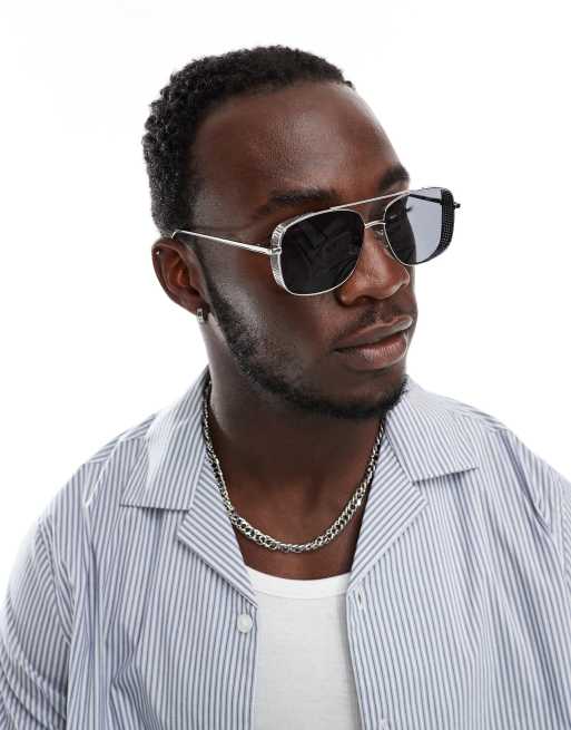 ASOS DESIGN - Lunettes de soleil aviateur avec monture structurée - Argenté