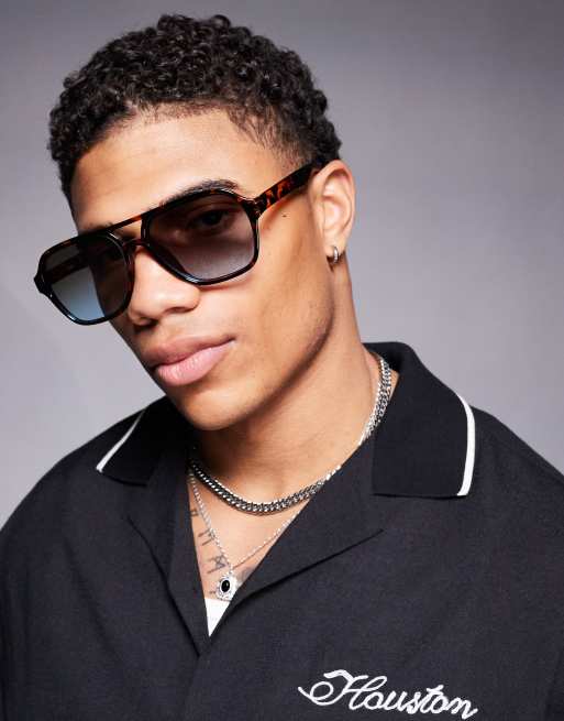 ASOS DESIGN - Lunettes de soleil aviateur avec verres bleus dégradés et monture effet écaille de tortue