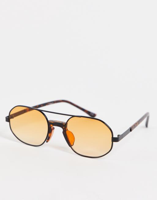 ASOS DESIGN - Lunettes de soleil aviateur avec verres orange effet dégradé et pont effet écaille de tortue - Noir