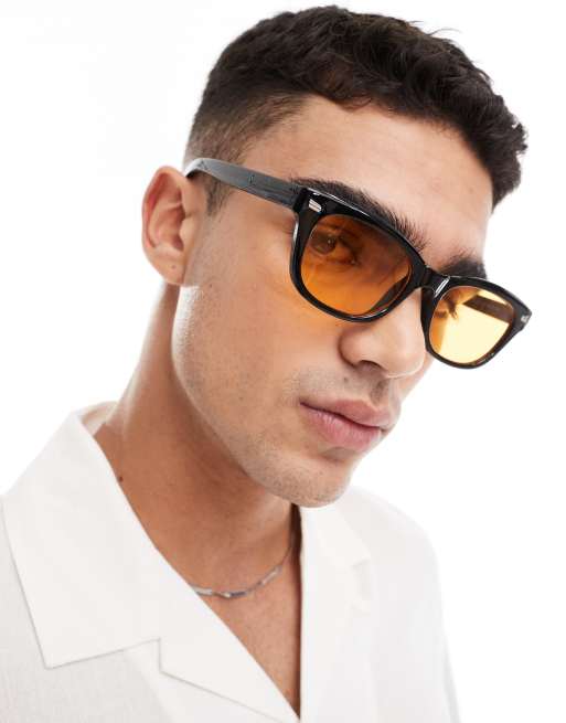 ASOS DESIGN - Lunettes de soleil carrées avec verres ambre - Noir