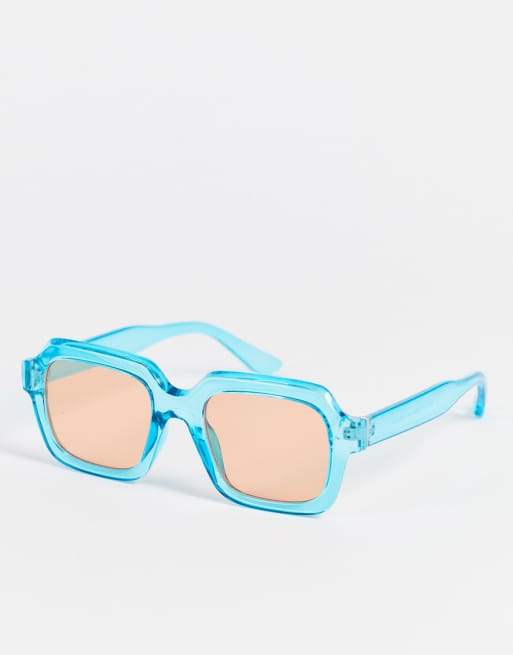 ASOS DESIGN - Lunettes de soleil carrées avec verres orange - Bleu cristallin - MBLUE