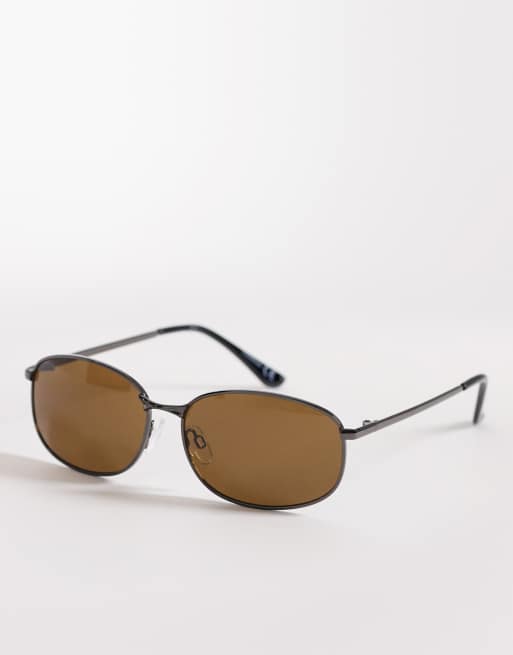 ASOS DESIGN - Lunettes de soleil en métal à verres marron - Marron