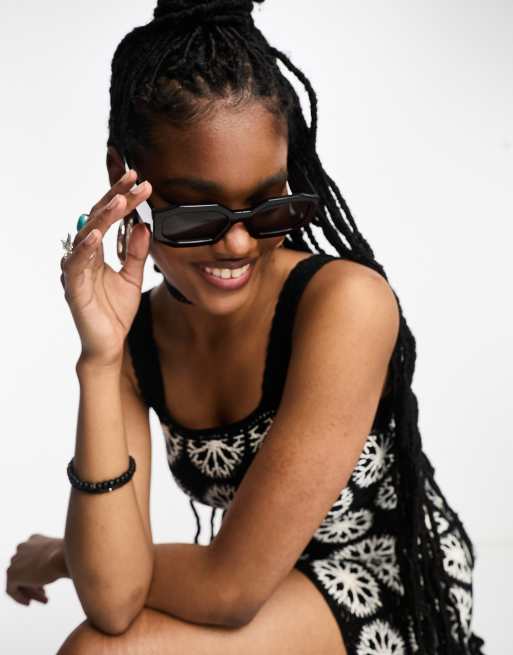 ASOS DESIGN - Lunettes de soleil hexagonales à monture épaisse - Noir