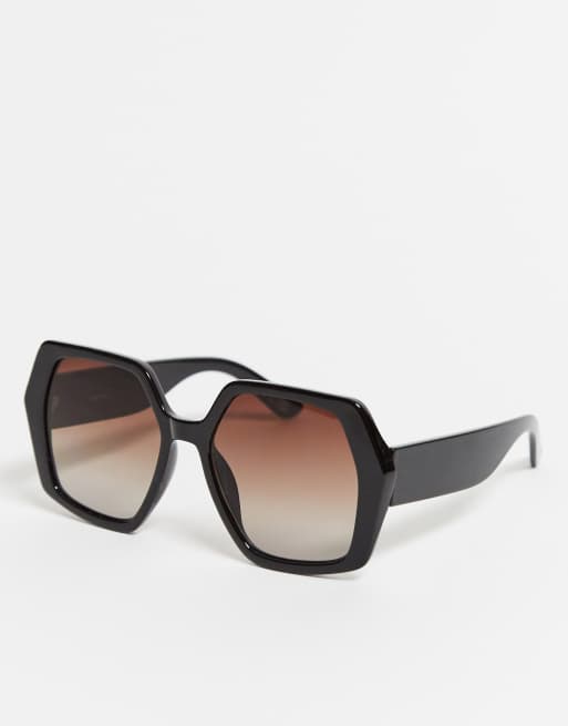 ASOS DESIGN - Lunettes de soleil hexagonales oversize style années 70 - Noir