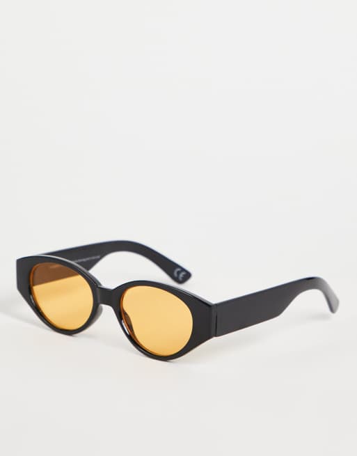ASOS DESIGN - Lunettes de soleil ovale rétro verres ambre - Noir