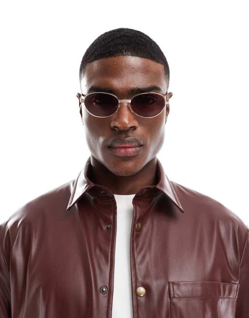 ASOS DESIGN - Lunettes de soleil preppy rondes style années 90 avec monture métallique à détails striés