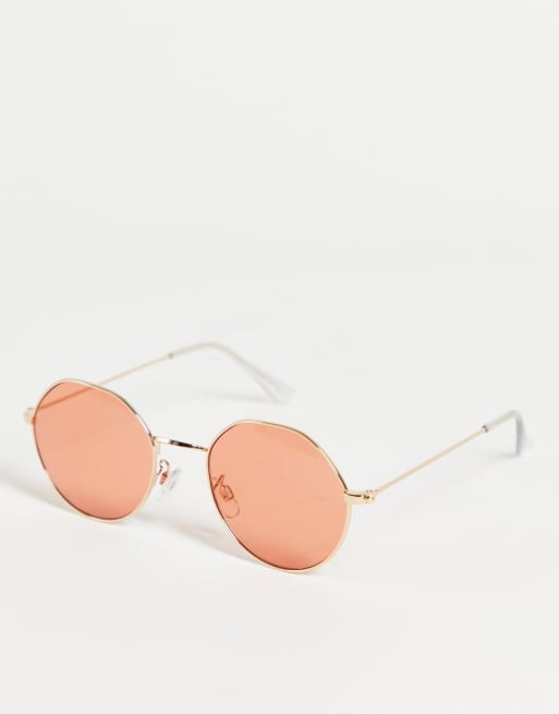 ASOS DESIGN - Lunettes de soleil rondes hexagonales avec verres corail