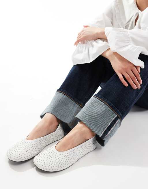 ASOS DESIGN - Lustre - Ballerines cloutées en cuir de qualité supérieure - Blanc