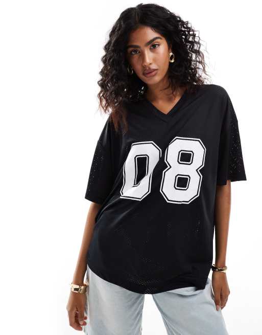 ASOS DESIGN - Maillot de football oversize style universitaire à imprimé - Noir