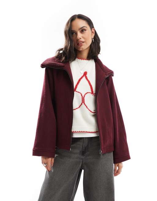 ASOS DESIGN - Manteau court en maille avec col - Bordeaux