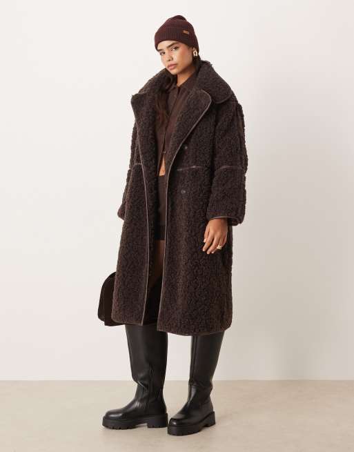 ASOS DESIGN - Manteau long imitation peau de mouton - Chocolat