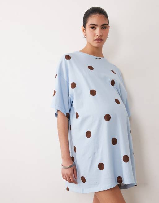 ASOS DESIGN Maternity - T-shirt de nuit oversize à pois oversize - Bleu/chocolat