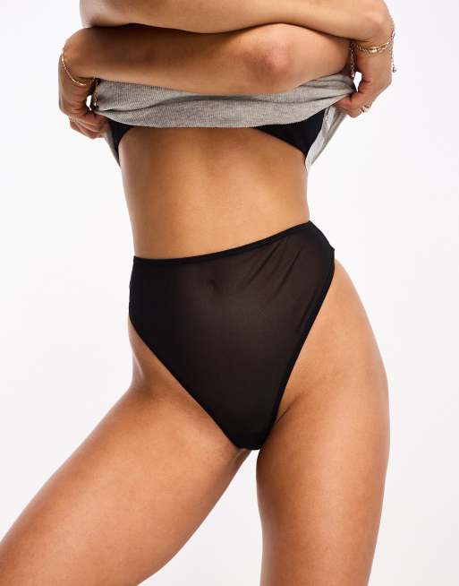 ASOS DESIGN - Mila - String gainant à taille haute en tulle - Noir