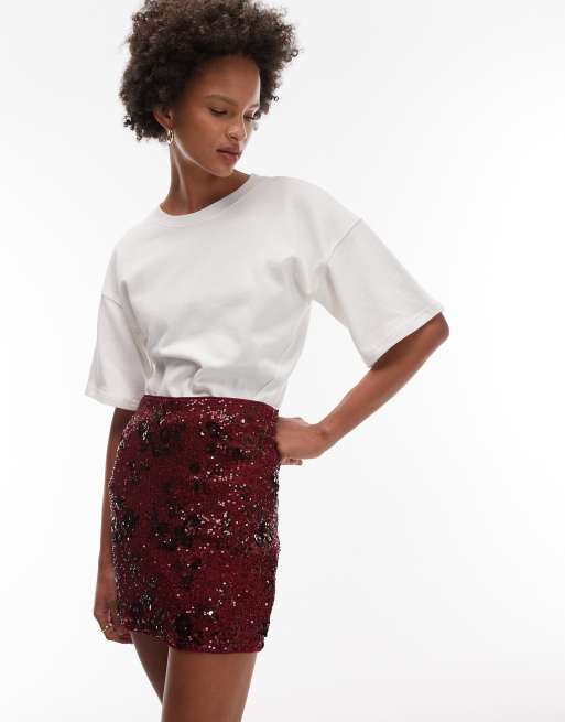 ASOS DESIGN - Mini-jupe à fleurs en sequins - Bordeaux