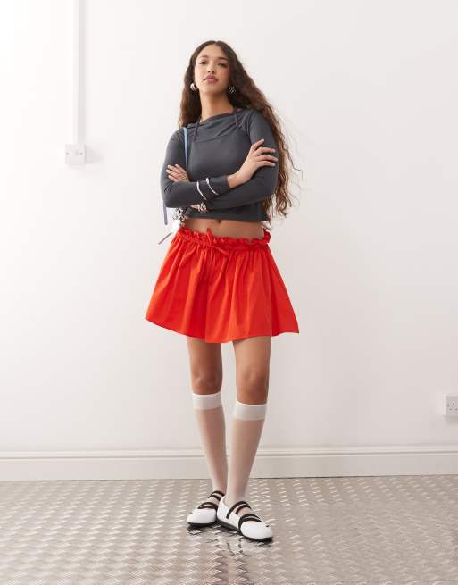 ASOS DESIGN - Mini-jupe à taille basse en popeline - Rouge