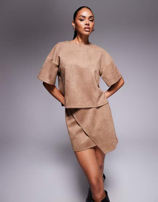 ASOS DESIGN - Mini-jupe asymétrique d'ensemble en imitation daim - Tabac