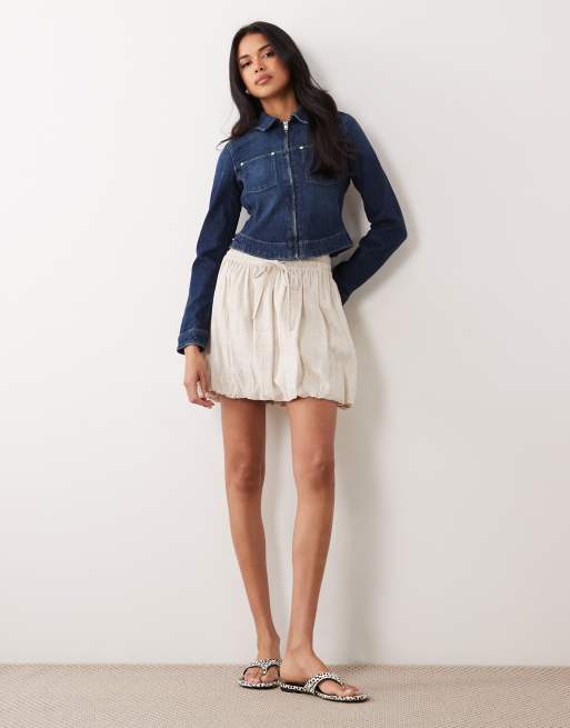 ASOS DESIGN - Mini-jupe bouffante en lin mélangé - Taupe