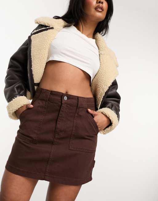 ASOS DESIGN - Mini-jupe cargo en denim - Marron