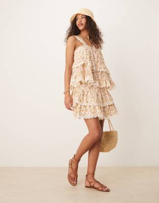 ASOS DESIGN - Mini-jupe d'ensemble à volants et ourlet brodé - Imprimé fleurs
