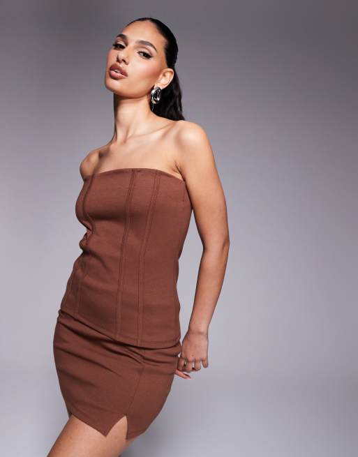 ASOS DESIGN - Mini-jupe d'ensemble en maille point de Rome de qualité supérieure - Chocolat