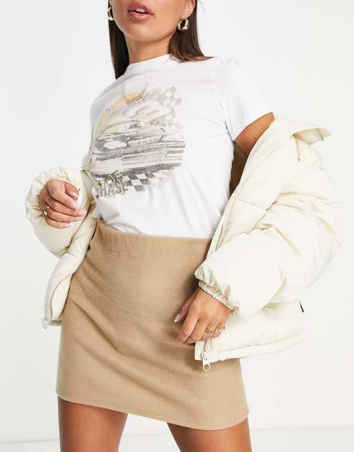 ASOS DESIGN - Mini-jupe duveteuse d'ensemble style tailleur - Fauve