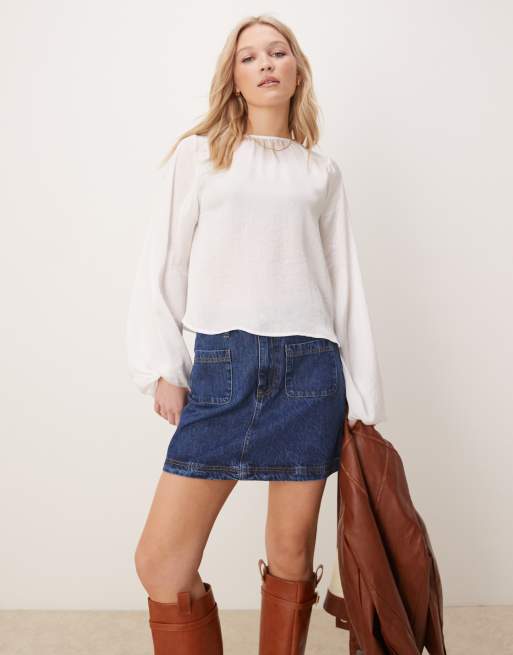 ASOS DESIGN - Mini-jupe en jean à poches plaquées - Indigo