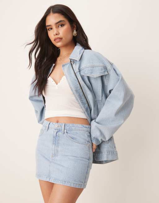 ASOS DESIGN - Mini-jupe en jean d'ensemble - Délavage clair