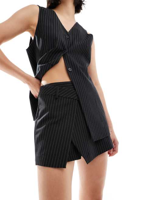 ASOS DESIGN - Mini-jupe short ajustée à fines rayures - Noir
