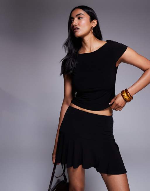 ASOS DESIGN - Mini-jupe virevoltante près du corps d'ensemble - Noir