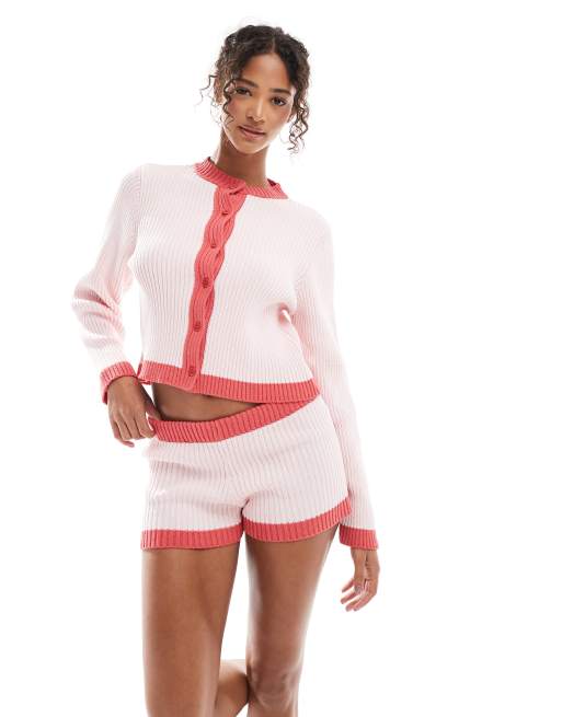 ASOS DESIGN - Mini-short d'ensemble rayé en maille - Rouge et rose
