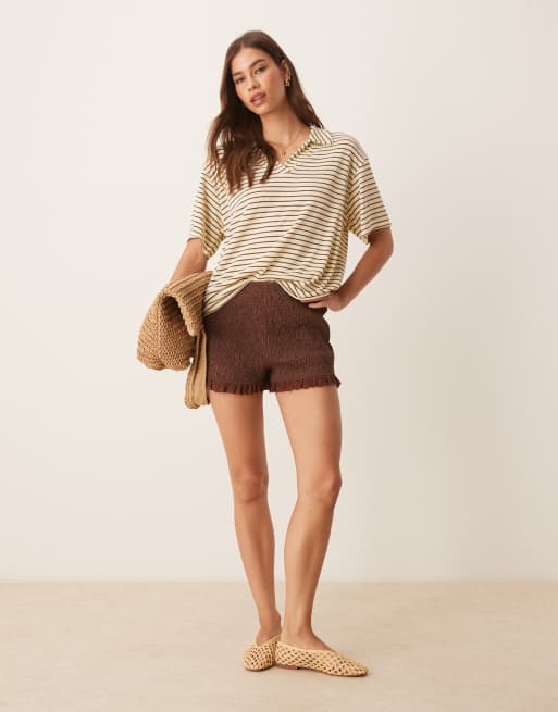 ASOS DESIGN - Mini-short froncé à bordures dentelle - Chocolat