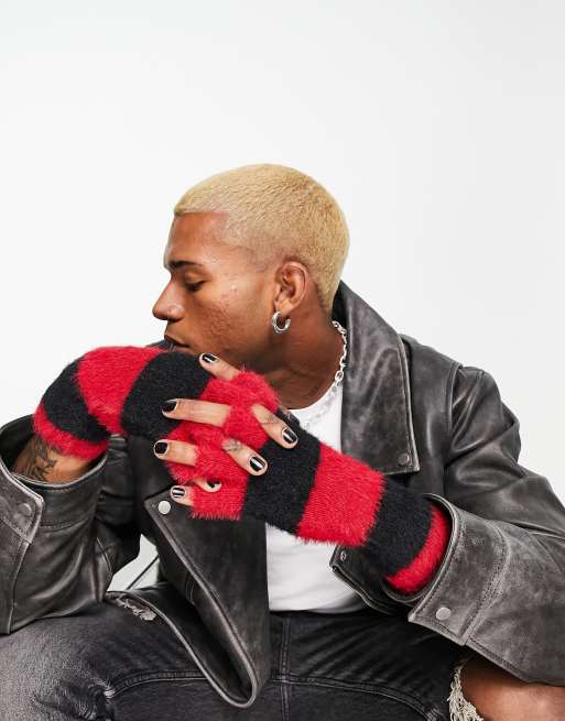 ASOS DESIGN - Mitaines duveteuses à rayures - Rouge et noir