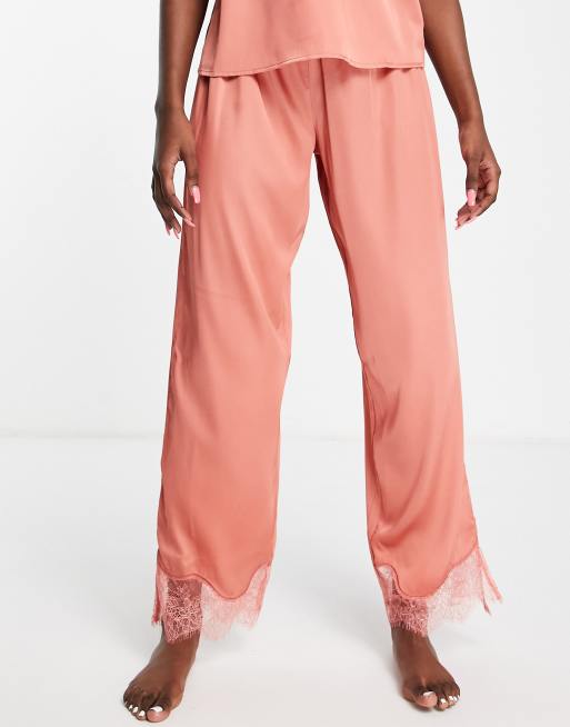 ASOS DESIGN - Mix & Match - Pantalon de pyjama en satin et dentelle - Rouille