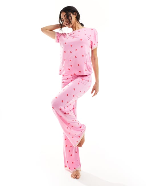 ASOS DESIGN - Mix & Match - Pantalon de pyjama super doux à imprimé cœurs - Rose