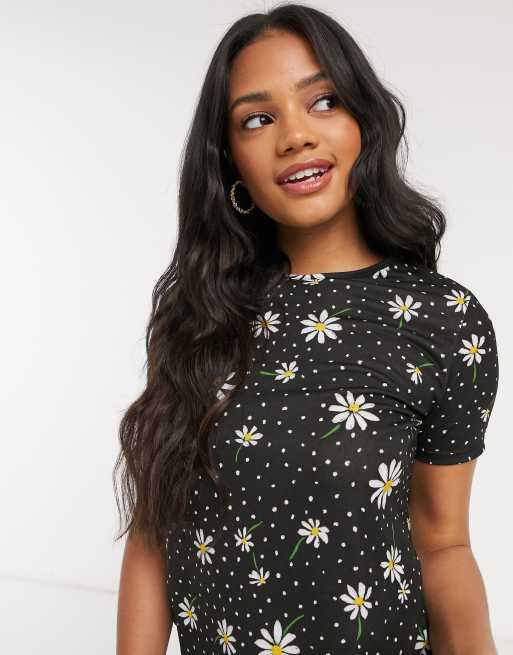 ASOS DESIGN - Mix & Match - T-shirt de pyjama à imprimé pâquerettes - Noir