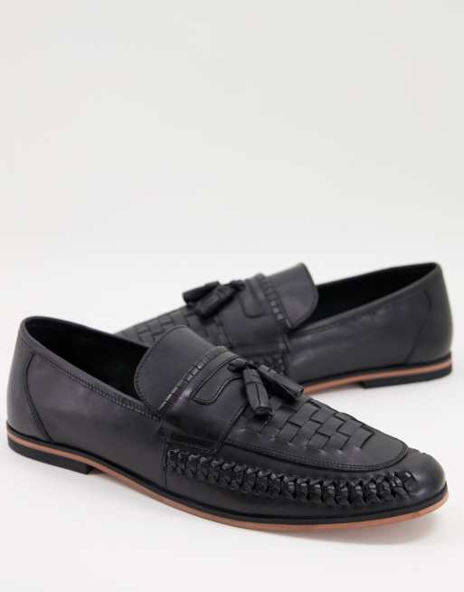 ASOS DESIGN - Mocassins à glands en cuir tressé - Cuir noir