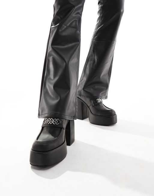 ASOS DESIGN - Mocassins à talon avec semelle chunky - Noir