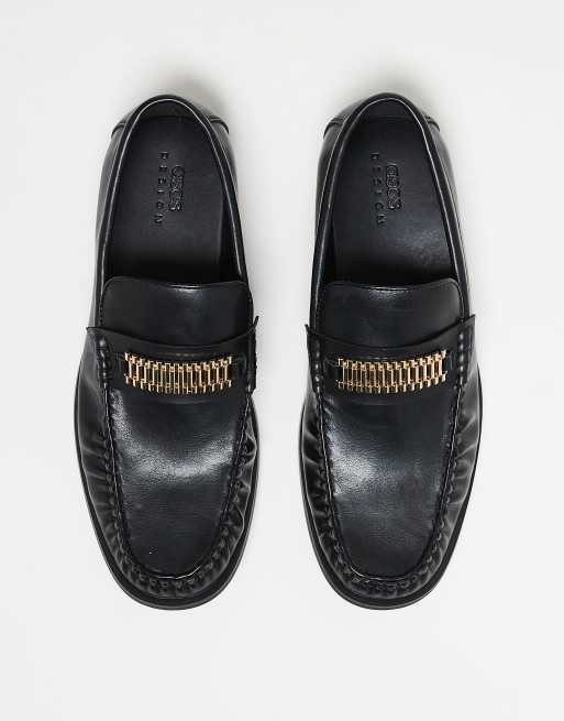 ASOS DESIGN - Mocassins avec détails métalliques dorés - Noir