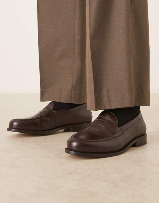 ASOS DESIGN - Mocassins en cuir effet vieilli - Marron