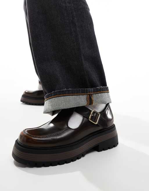 ASOS DESIGN - Mocassins style babies chunky en cuir - Marron