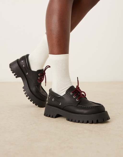 ASOS DESIGN - Monsoon - Chaussures bateau à semelle chunky et lacets - Noir