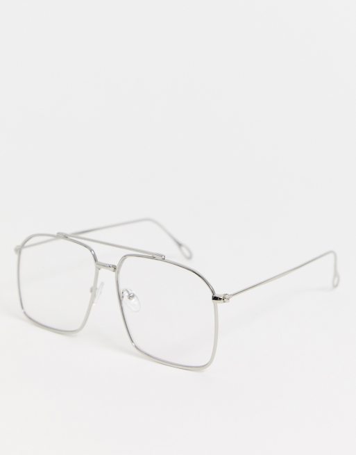 ASOS DESIGN navigator fashion glasses in silver metal with clear lenses